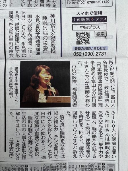 エムール睡眠・生活研究所所長の神川康子先生(富山大学名誉教授)が、富山市合併20周年記念式典において特別功労賞を受賞されました。神川先生は、長年にわたり睡眠教育の研究および啓発活動に尽力されるとともに、富山県および富山市における生活・住環境分野の行政施策の推進にも積極的に参画されてきました。
