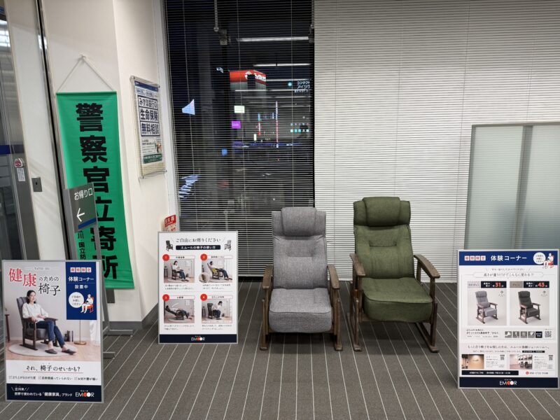 株式会社エムール(本社:東京都立川市、代表取締役:高橋幸司)は、地域との連携活動の一環として、みずほ銀行立川支店(東京都立川市)内に「健康のために椅子体験コーナー」を設置いたしました。 本コーナーでは、当社が開発した人間 … 続きを読む みずほ銀行立川支店内に「健康のために椅子体験コーナー」を設置 ~健康家具で地域の健康をサポート~