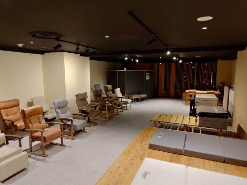 茶室からインスピレーションを受けた至福の睡眠®が味わえる体験型ショールームです。天井には赤松木炭をもとにつくられた天然炭塗料、壁にはメソポア珪藻土、寝台には飫肥杉(オビスギ)を使用し、安全で澄んだ空気が空間に満たしています。完全予約制で、専門スタッフがお客様の「寝る・座る・たたむ」の体験をサポートします。